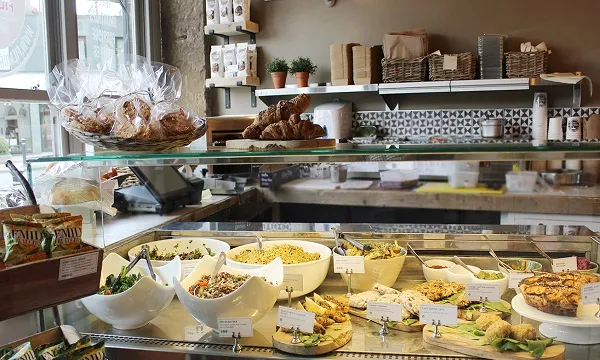 The Fresh from Filmore menu includes waffles and porridge for breakfast to bagels, salad boxes, and wraps for lunch. It also offers a selection of cakes for dessert.
