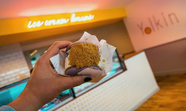 The 450 square feet store serves Yolkin’s signature ice cream macarons inspired by South East Asian flavours.