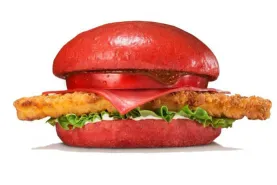 The fast food chain is offering an all-red chicken burger that serves as a counterpoint to its limited-time all-black hamburger.