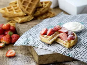 There are also homemade waffles topped with banana and salted caramel or English strawberry and Cornish clotted cream.