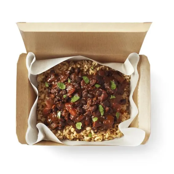 With black beans, carrots and onions, spiced with sweet and smoked paprika, oregano and coriander.