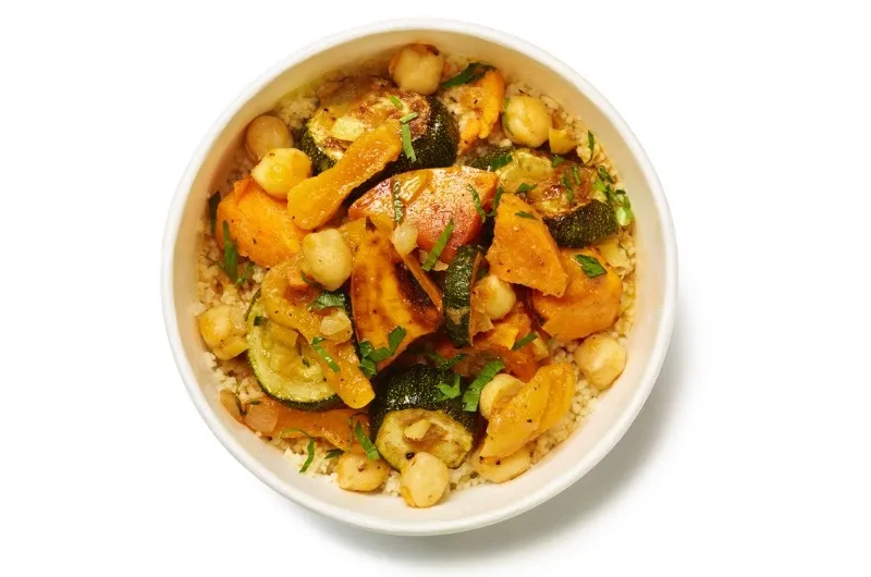 The Harissa couscous is made from roasted chunks of harissa-coated vegetables, fluffy couscous and a broth infused with the distinct flavour of dried Iranian lime.