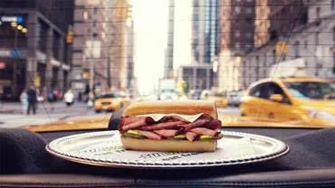 Inspired by New York, the sub combines tender cuts of beef with a peppery crust, American mustard, pickles and melted cheese.