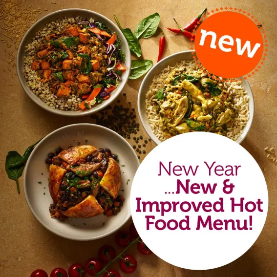 The butternut, lentil and spinach now has 30% less fat, with new options for gluten free, dairy free, vegetarian or vegan diets.